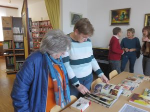Einige Weidner KünstlerInnen sind unserer Einladung gefolgt in den Räumlichkeiten der Bücherei ihre Werke auszustellen. Zahlreiche Besucher strömten in die Bücherei um die präsentierten Werke, die in unterschiedlichen Stilrichtungen und Techniken gestaltet waren, zu bestaunen. Die ausgestellten Bilder zogen sofort die Aufmerksamkeit der Gäste auf sich. Viele Besucher betrachteten die Kunstwerke mit großem Interesse, tauschten Eindrücke aus und kamen mit den KünstlerInnen ins Gespräch. Die Begeisterung im Raum war deutlich spürbar – eine gelungene Veranstaltung. Auch junge Künstler waren sichtlich stolz auf ihre ausgestellten Bilder. Großen Anklang fanden die zahlreichen Kunstbände von berühmeten Malern, die auch gleich betrachtet und verliehen wurden.