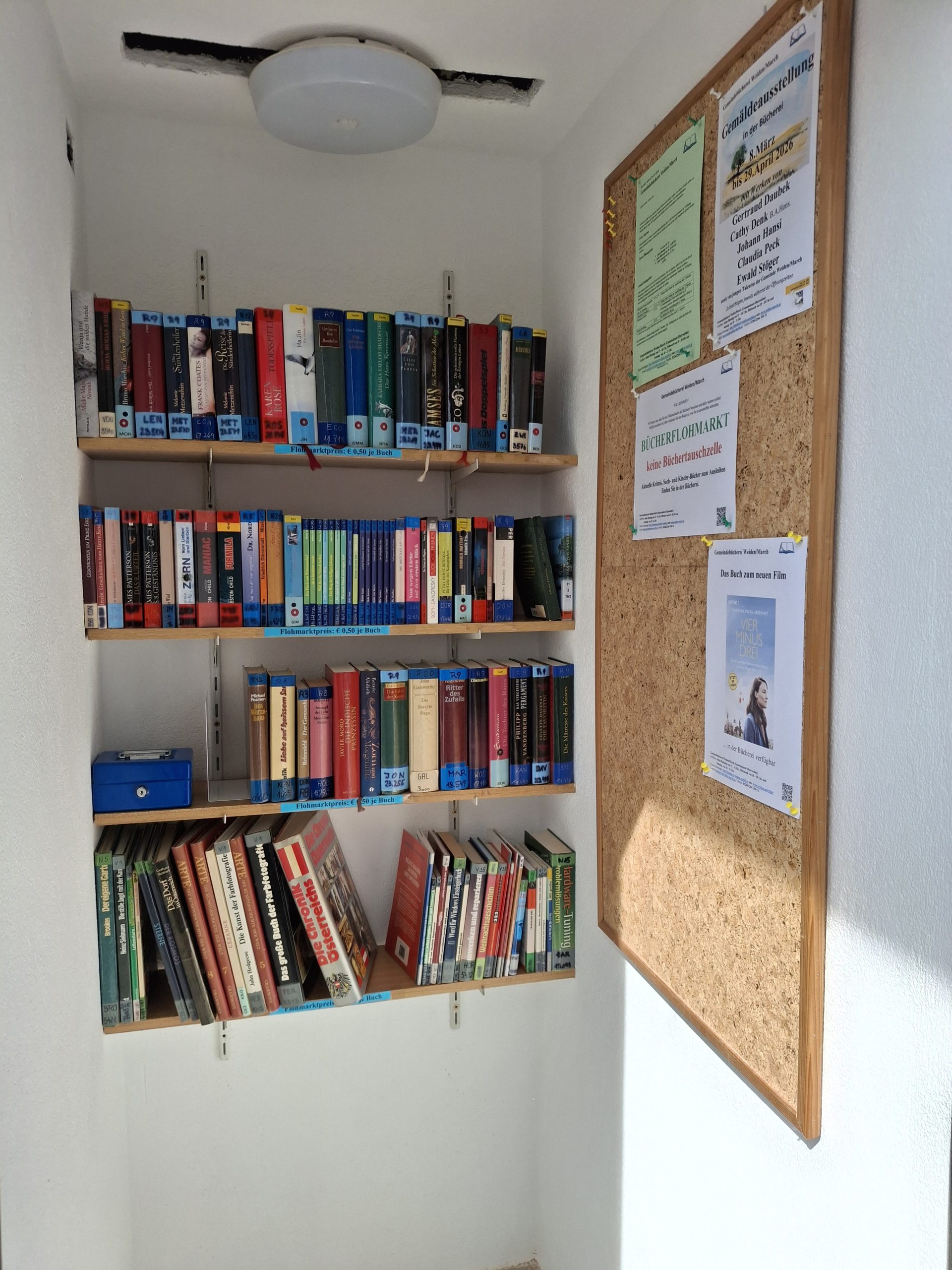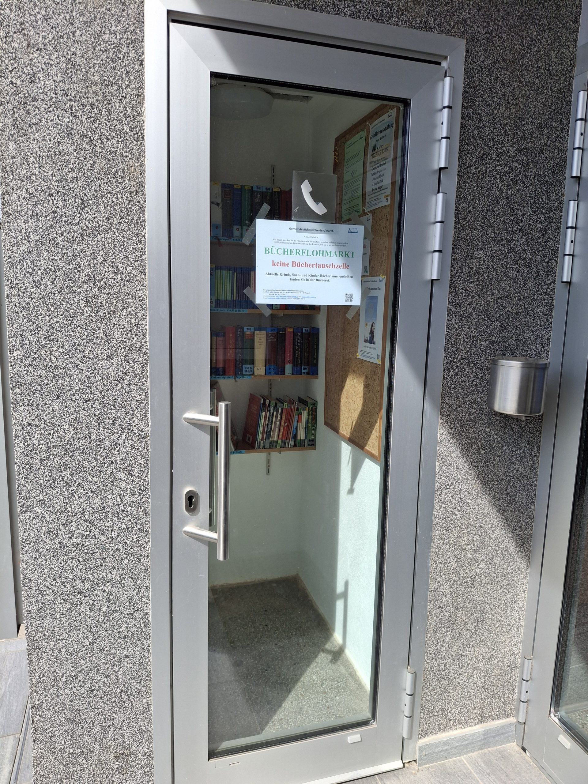 Unser Bücherflohmarkt befindet sich vor dem Haupteingang der Gemeinde Weiden/March.